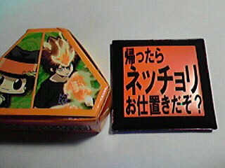 | REBORN Ver. 300円 40mm×40mm | 「帰ったらネッチョリお仕置きだぞ?」 ※左の箱は付きませんのであしからず( 笑)。 |