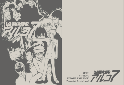 『凶悪戦隊アルコ7』 B5/オフ本 20P 200円 2008/05/04発行 虹ツナ四コマ リボーンの一声から、アルコのメンバーとツナで戦隊モノを撮影する事になって・・・、と言った感じの話。 内容は撮影の際のドタバタ劇です。実際に戦隊モノっぽいシーンはありません。表紙のデーターを間違えて劣化させたのは良い(?)思い出。 |