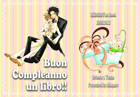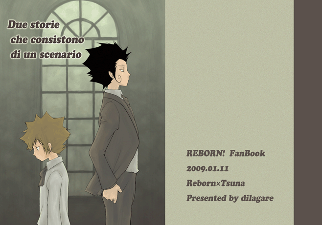 『Due storie che consistono di un scenario』 A5/オフ本 36P 400円 2009/01/11発行 表紙・イラスト:杉本政城さま 杉本さんから頂いたイラストから派生した、二編の小説。 ・「adottante」・・・養父・リボーンと養い子綱吉。パラレル ・「GIOGO」・・・呪いの解けたリボーンと、リボーンとの関係を認めたくない綱吉。原作沿いパラレル |